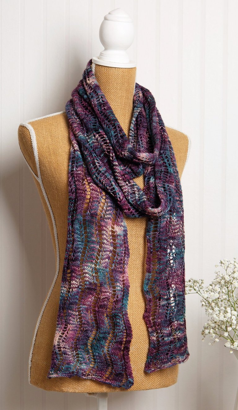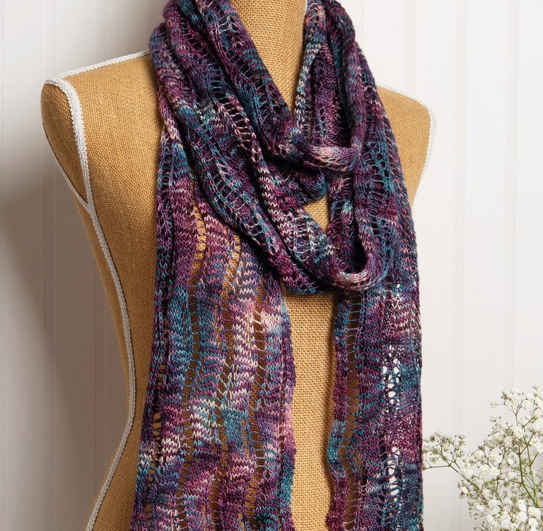Each pattern includes all the information you will need to make the particular scarf you like such as the materials required, including the yarn weight and the actual make of yarn used by the author; the needle size in millimetres with UK and US conversions; the tension or gauge required; the blocked finished size and the written instructions.
