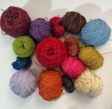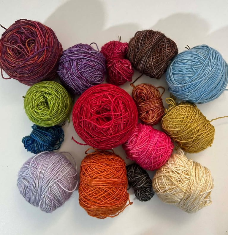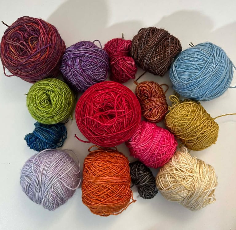 What I do love using sock yarn for, though, is shawls and scarves. Sock yarn is perfect for accessories — light but warm, colourful without being bulky, and a joy to work with. And yet… these leftovers have been sitting there for years, because I simply couldn’t bring myself to throw them away.
