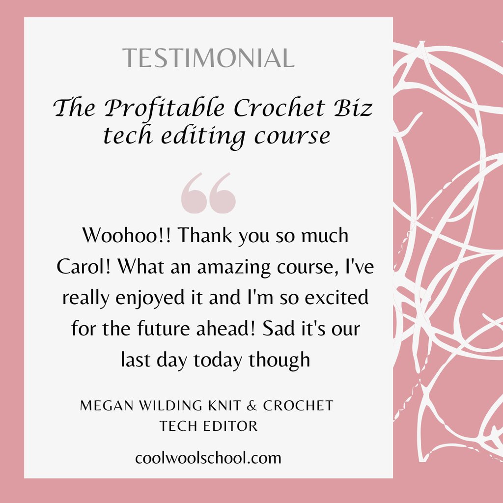 This is an opportunity to take your love of Crochet or Knitting and expand your knowledge with our tech editing course.