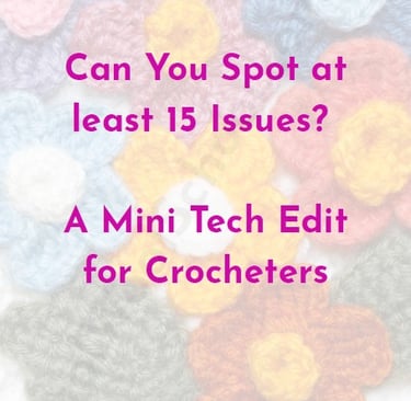 You’ll receive a fictional amigurumi pattern with 15 issues (the kind real designers rely on editors to find). Then, the next day, you’ll get the Answers revealing exactly what a trained tech editor would have spotted — and why it matters.